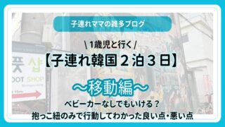 1歳児を連れての2泊3日のソウルへ旅行しました。1日目の過ごし方について詳しくご紹介しています。飛行機を降りてから向かった場所やホテル周辺での晩御飯探しなど、リアルな体験をもとに綴っています。これから子連れで韓国旅行を検討している方への参考になれば幸いです。