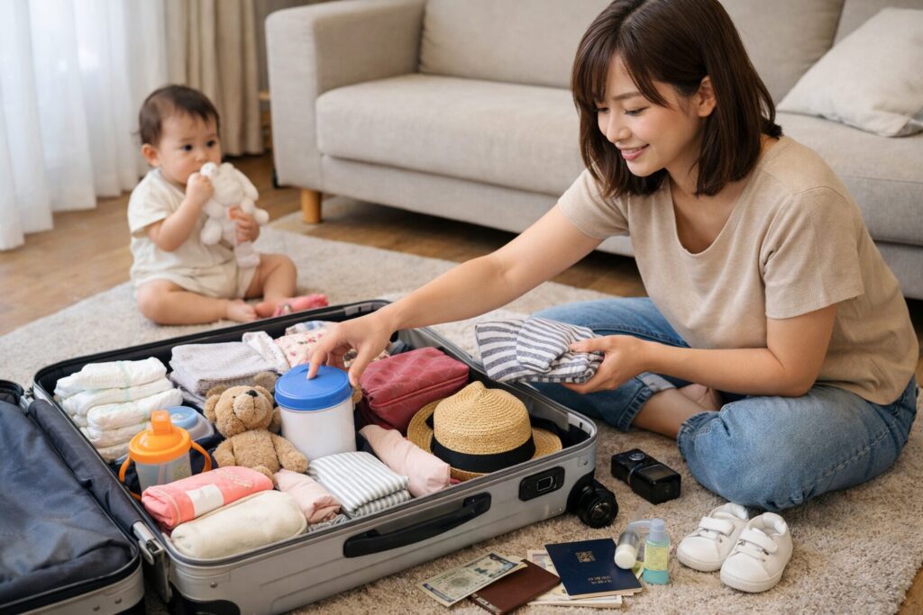 「赤ちゃん連れで何を準備したらいいの?」と不安だらけで出発準備をしました。