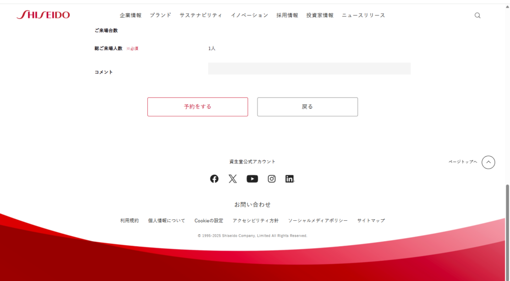 ・予約方法:資生堂公式サイトから(毎月1日に翌々月分を受付)